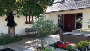 Za dveřmi apartmánů se svět ještě víc zpomalí. Kvetoucí zahrada, opečovávaná s citem a trpělivostí, velký bazén s lehátky na sluníčku a atmosféra francouzské riviéry na dráze pro pétanque. Cyklostezka, která spojuje malebnou jižní Moravu s Rakouskem, je na dosah ruky. Vinice se třpytí ve slunci, pole vlají v tichém větru a čas plyne úplně jinak. Ať už zvolíte toulání bez plánu, klidnou projížďku nebo jen posezení se sklenkou vína, všechno má společného jmenovatele – pocit lehkosti. Protože někdy stačí málo. Být venku. Dýchat. A jen tak si žít… Drobnosti, které jinde bývají samozřejmostí, zde tvoří celek. Vše má své místo. Prostorné hlídané parkoviště, uzamykatelná kolárna, terasa s posezením, bezplatné Wi-Fi. Vše je tu připraveno tak, aby vám nic nechybělo… Protože DáLe – jen tak si žít… není jen bod na mapě jižní Moravy. Je to stav mysli. Místo, kde se zastaví čas, dech se prohloubí a vy si dovolíte být přesně tady a teď.